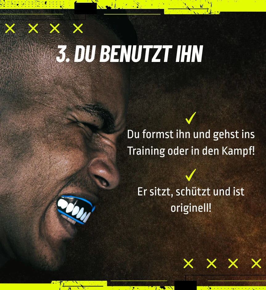 Mundschutz mit eigenem Motiv gestalten. Für alle Arten von Kontaktsportarten.